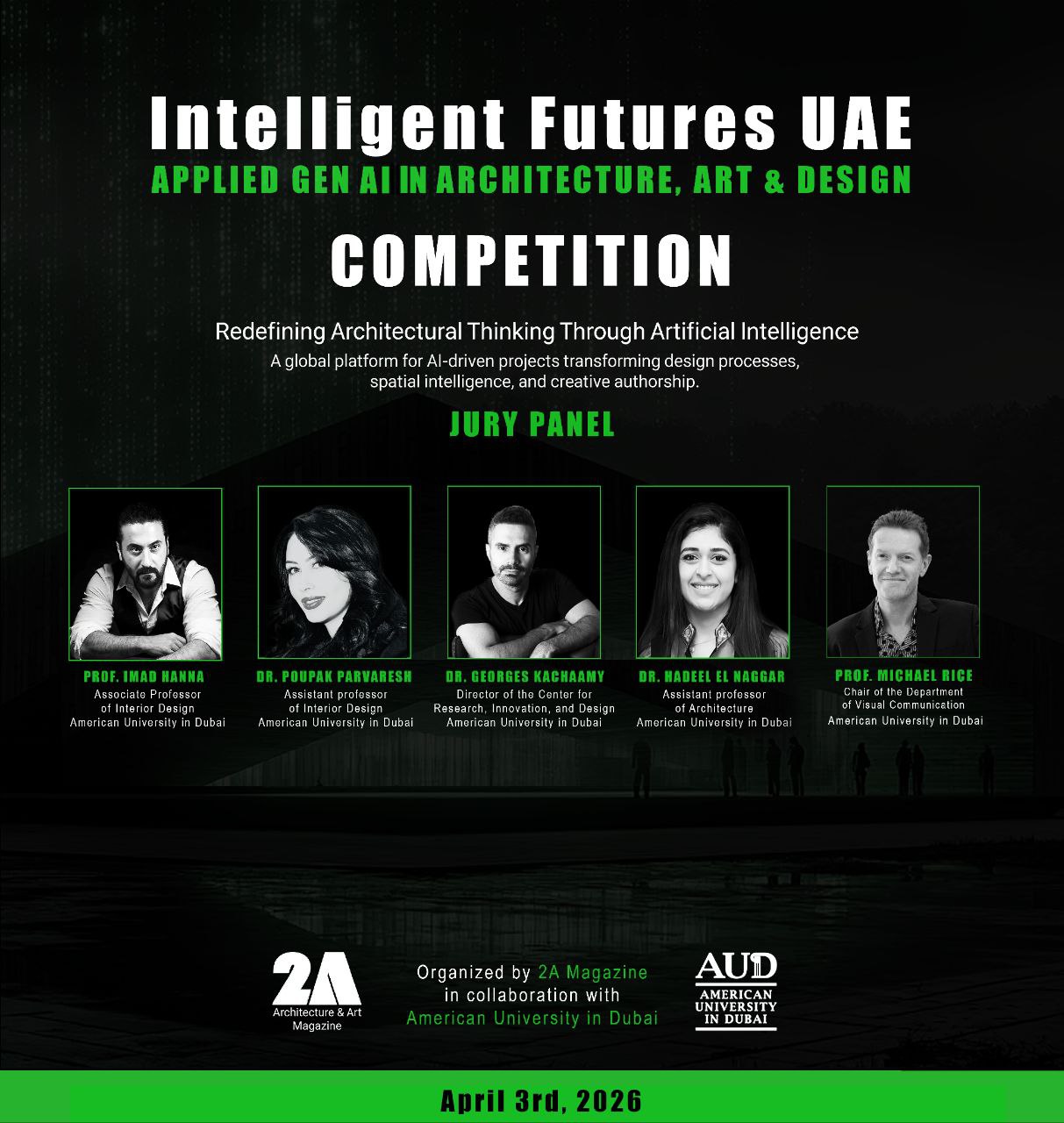 This annual competition invites architects, interior designers, urban designers, and project developers to submit innovative built and conceptual works developed through AI-driven approaches. The official ceremony will be held at AUD, creating a supportive environment for collaboration, responsible innovation, and human-centered practice based on global principles and values aimed at improving quality of life worldwide.